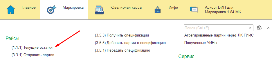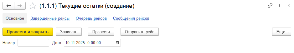 Рейс 1.1.1 предназначен для загрузки текущих остатков.