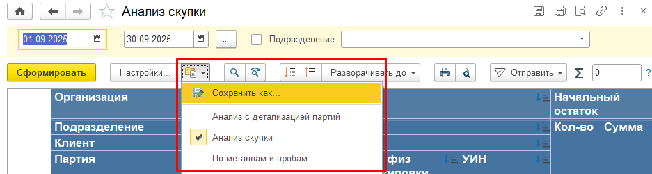 Для формирования отчёта выбрать период и при необходимости подразделение и нажать Сформировать.