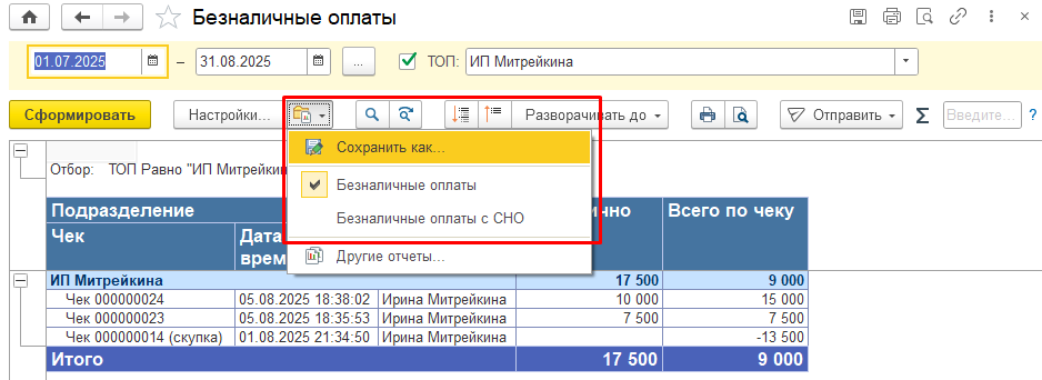 Для формирования отчёта выбрать период и нажать Сформировать.