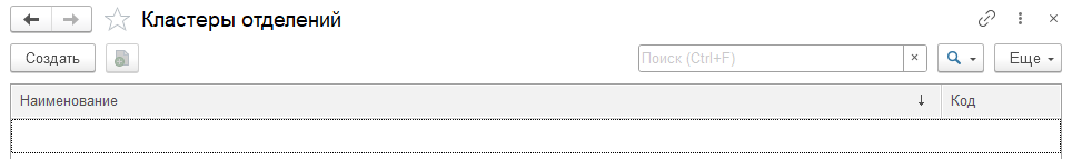 В открывшемся окне Кластеры отделений (создание) ввести наименование - название, которое будет объединять группу отделений.