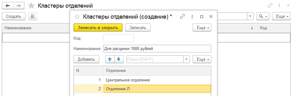 По кнопке Добавить добавить необходимые отделения для этого кластера.