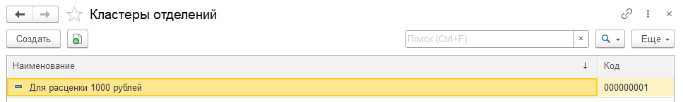 В справочнике Кластеры отделений нажать Создать.